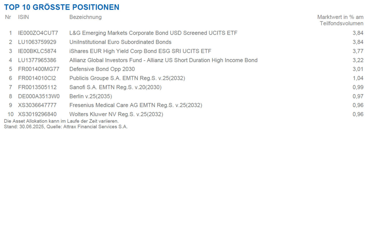 Die Asset Allokation kann im Laufe der Zeit variieren. Stand: 30.09.2025, Quelle: Attrax Financial Services S.A.